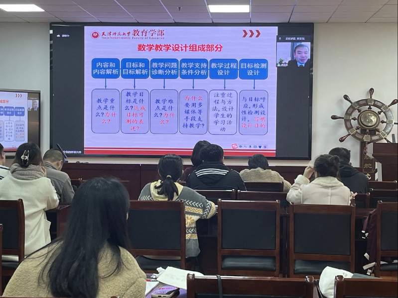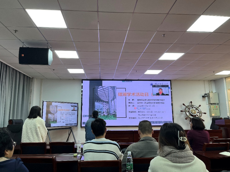 为了提高学科教学(数学)教育硕士及师范生的教师专业素养,2022年11月21日晚,51暗网 举办“磁湖学术活动日(八)”活动,邀请到天津师范大学教育学部博士生导师吴立宝教授,做了题为“指向深度学习的中学数学教学设计”的线上学术报告,学科教学(数学)导师和学生在信息大楼10603、本科师范生和部分教师通过腾讯会议分别参加,报告由51暗网 院长吴爱龙教授主持。