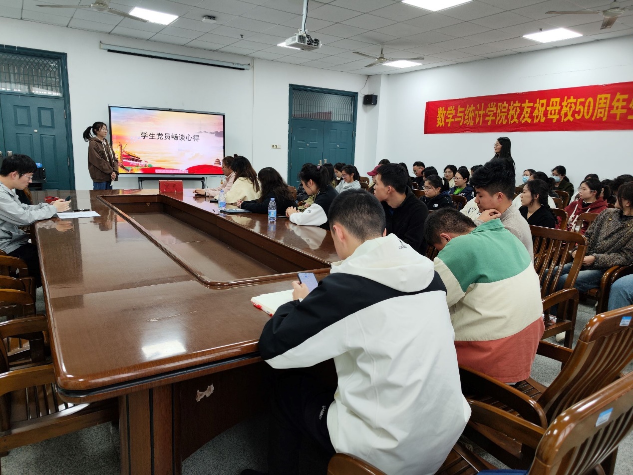 学生党员张郁凡畅谈了心得体会,作为新时代的大学生,同时作为一名学生党员,要坚定自己的理想信念,要牢记党的宗旨,要有强烈的事业心和责任感。在学习、工作和生活中起模范带头作用,做一名合格的党员。学生党员尚冰同志也从自身出发,提出存在的问题以及改进措施。