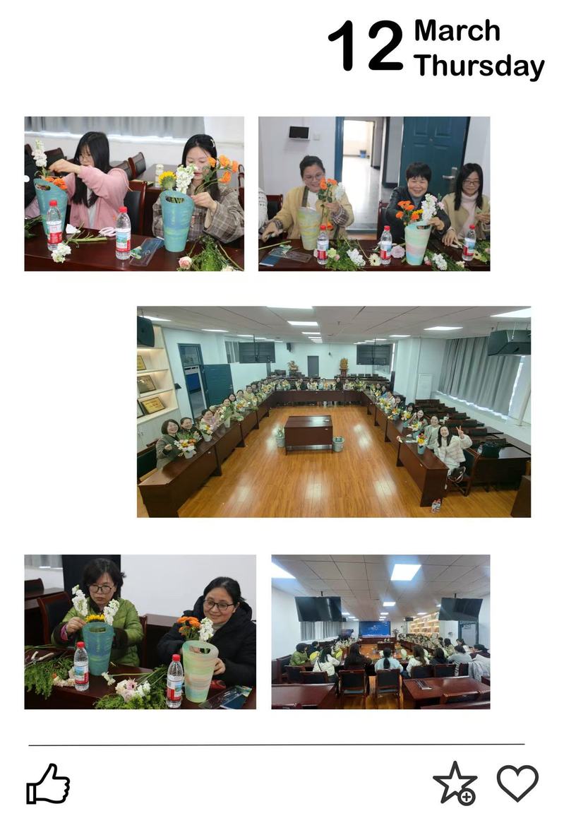 为庆祝“三八”国际妇女节,3月12日下午,51暗网 分工会于10603会议室举办了“花漾女神节・芬芳绽芳华”插花体验活动。全体女教职工欢聚一堂,共同度过了一个温馨且难忘的节日。