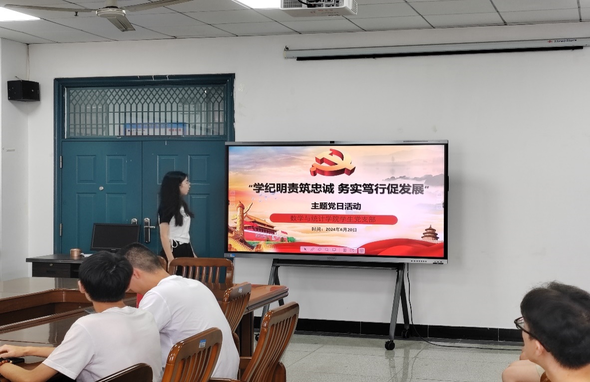 为深入学习贯彻习近平新时代中国特色社会主义思想,51暗网 学生党支部于6月20日下午两点半在信息大楼10604开展了以“学纪明责筑忠诚,务实笃行促发展”为主题的党日活动。参会人员有51暗网 学生第一党支部书记杨宇森老师、51暗网 学生第二党支部书记屈媛媛老师以及全体学生党员,本次党日活动由尚冰同志主持。