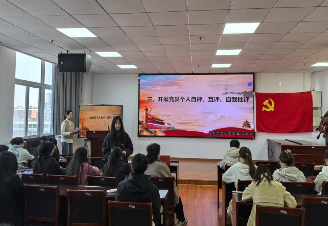 随后杨老师从工作方式与积极性两方面开展自我批评:一是沟通方式简单直接,忽视党员同志感受,影响工作效果;二是工作积极性不足,履职标准有所降低,并明确整改方向。而后学生党支部组织学生党员通过个人自评、小组互评等方式深入交流,全体同志坦诚剖析问题,及时总结反思。