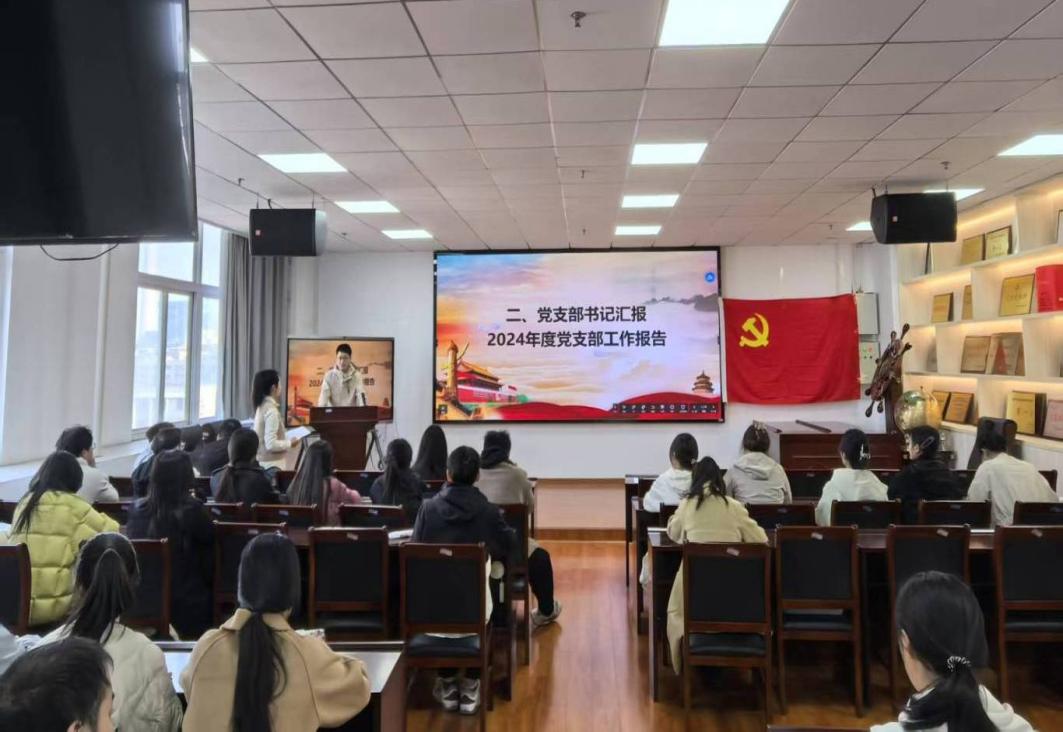 在本次会议中,学生党支部书记杨宇森老师就2024年度党支部工作展开汇报:落实主题党日8次,严格执行“三会一课”制度;发展党员30人(含维吾尔族1名),转正18人,培养积极分子92人;开展廉政教育、党的二十届三中全会精神学习及20次微党课;组织支教帮扶、创建直播间;创新微党课及民族团结活动。同时检视存在工作标准不高、民主评议不充分等问题,要求全体学生党员严守政治纪律。