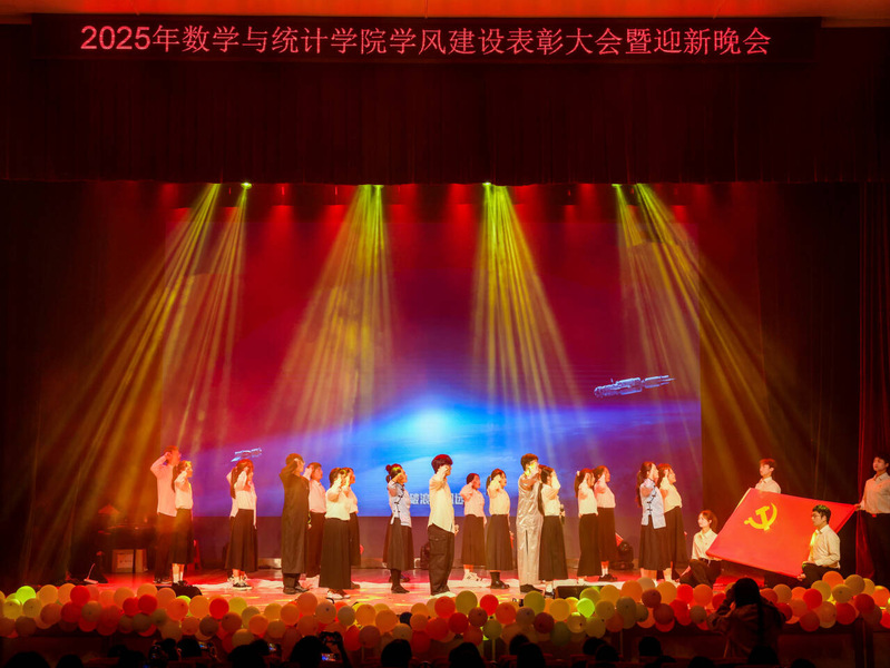 活动分为学风表彰与迎新晚会两大环节。在表彰环节中,学院对2024-2025学年在学业方面表现突出的个人和集体予以表彰。吴爱龙、杨志丹为吴沛璇、李慧玲、张玉倩、王燕等国家奖学金获得者颁奖;刘琼芳、姜国为“学业之星”获奖代表颁奖;王本成、陈引兰为“优良学风寝室”代表颁发荣誉证书。研究生国家奖学金获得者吴沛璇、本科生国家奖学金获得者王燕作为学生代表发言,分享了学习心得与成长感悟,展现了数统学子积极向上的精神风貌。