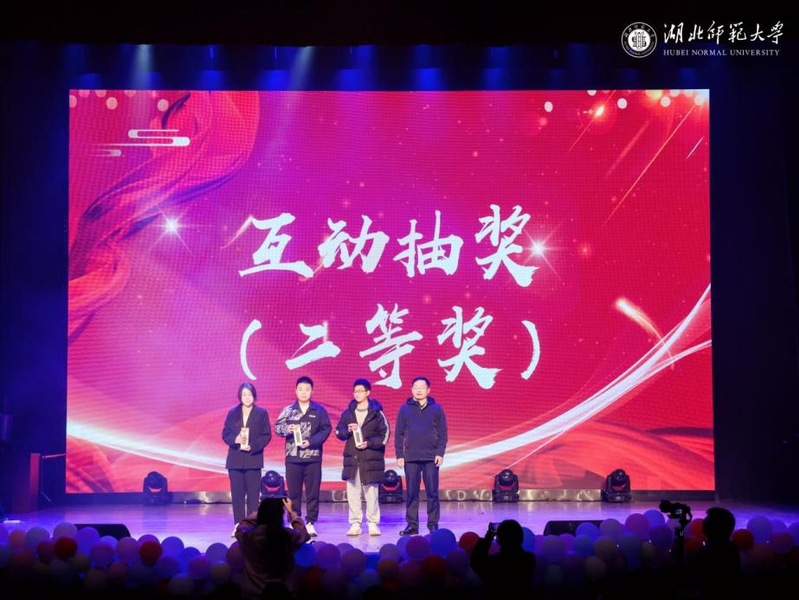 晚会中还设置了抽奖环节,由袁曼、赵大方、陈琴现场抽取一、二、三等奖,增强了师生互动,营造了轻松愉快的现场氛围。