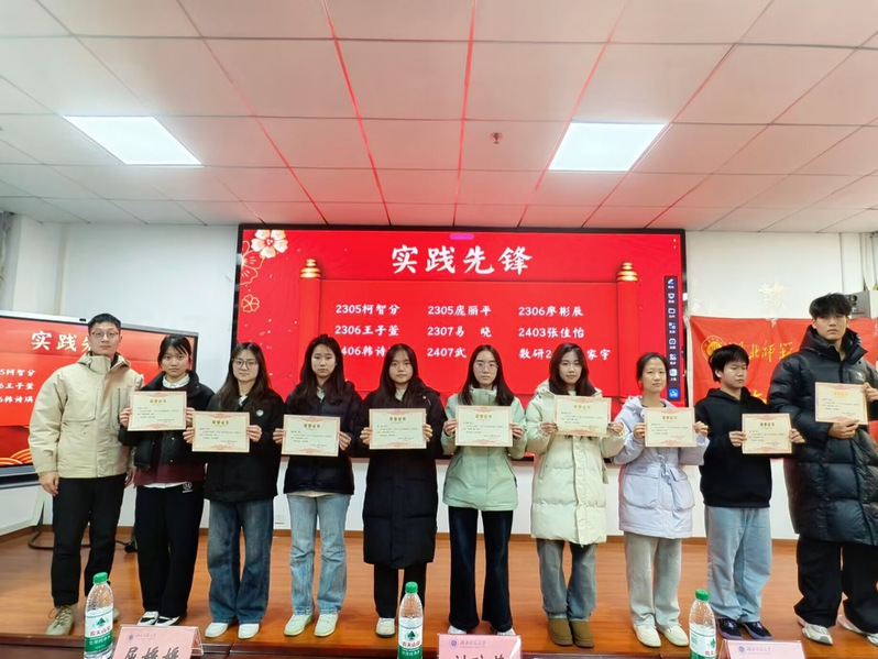 本次暑期“三下乡”涌现了一批积极参与、表现优异的优秀队员,与会领导老师分别为“特殊贡献奖”、“实践先锋”和“实践之星”获奖代表颁奖并合影留念,定格了数统学子的实践风采。